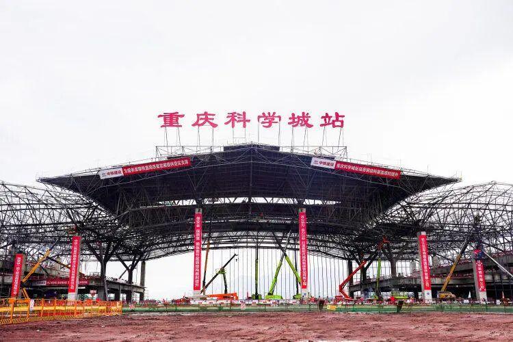 近日成渝中线高铁“重庆科学城站”站名安装到位标志着距离该站站房整体亮相更近一步。