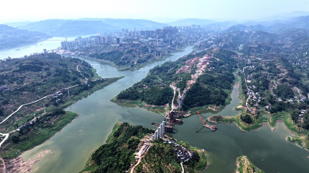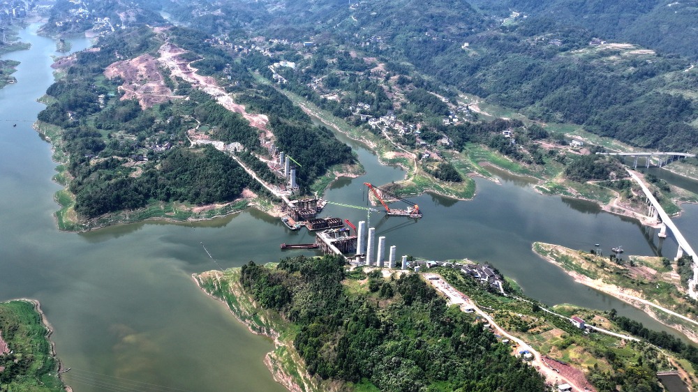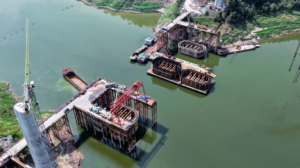 9月6日,俯瞰渝万高铁㽏井河双线特大桥施工现场。通讯员 赵军 黄楷 摄