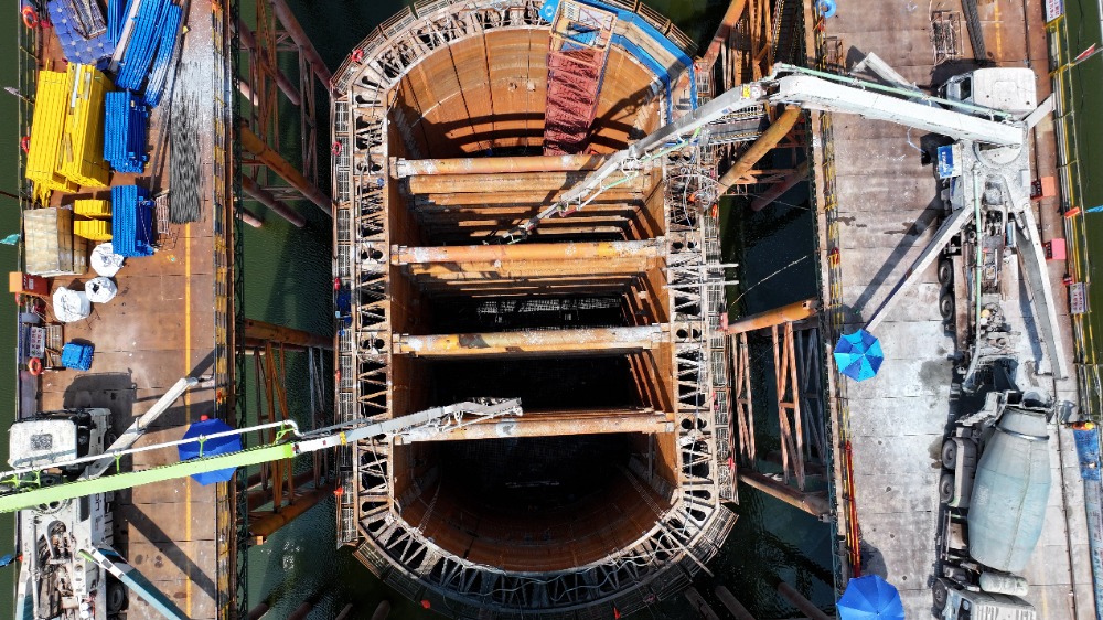 9月6日,渝万高铁㽏井河双线特大桥7号墩承台加紧浇筑施工。通讯员 赵军 黄楷 摄