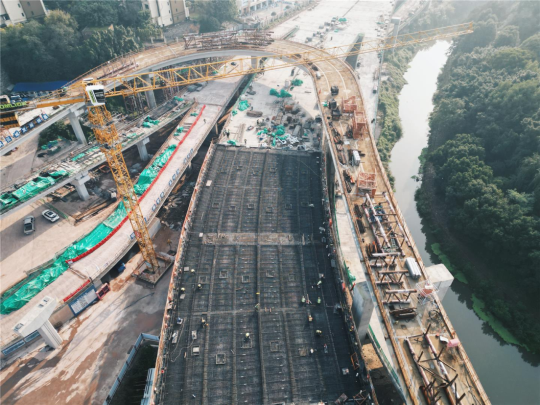 近日,新燕尾山隧道工程施工二标段苦竹坝立交关键控制性工程——H匝道桥H3联钢箱梁节段已顺利完成安装。截至目前,新燕尾山隧道工程整体建设任务已完成约36%。