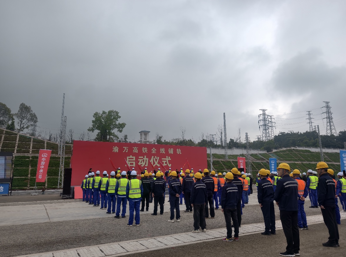 4月3日8时58分,在涪陵区涪陵北站施工现场,首对500米长钢轨从新型多功能长钢轨牵引车上稳稳铺下,标志着新建重庆至万州高速铁路(以下简称渝万高铁)全线铺轨工程正式启动。