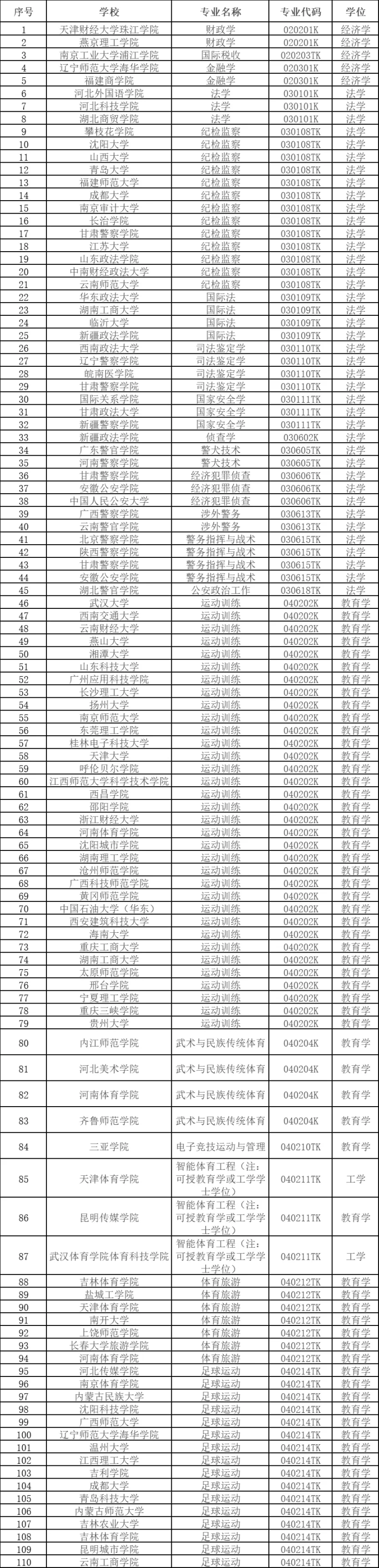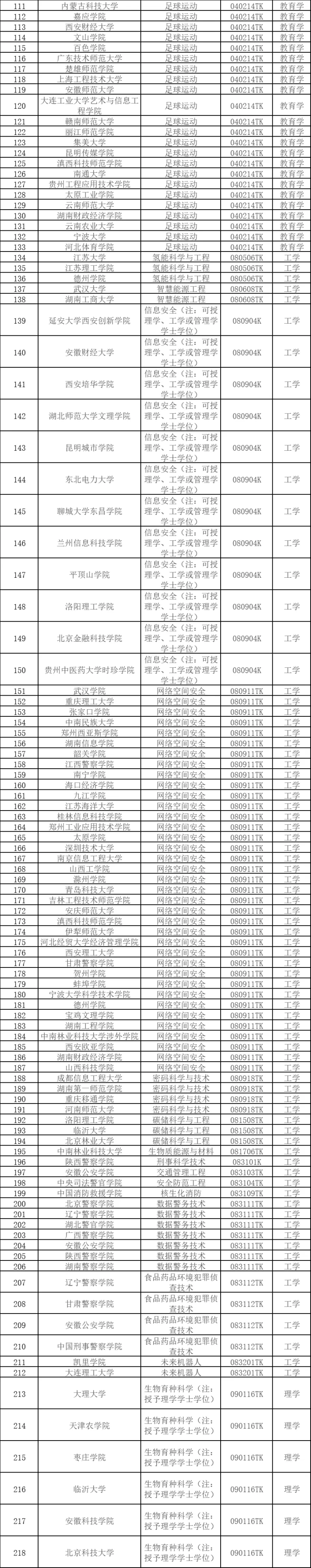 从申报的专业类型来看,2024年度共申报176种专业。据统计,申报数量前五名的专业为:足球运动(39个)、网络空间安全(37个)、运动训练(34 个)、健康与医疗保障(17个)、老年医学与健康(14个)。