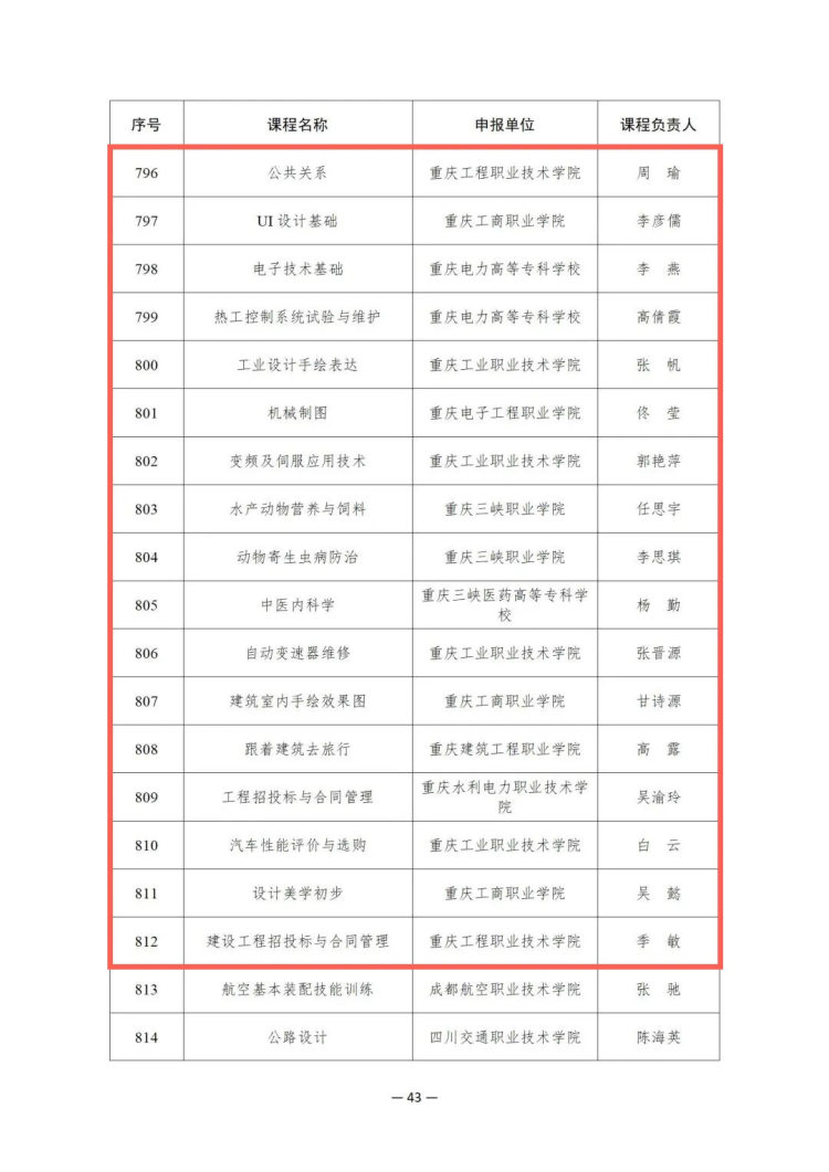 12月9日,教育部发布公告,决定认定北京工业职业技术学院“智能机器人组装与调试”等914门课程为2023年职业教育国家在线精品课程。其中,重庆52门课程入选。