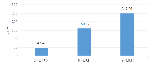 从区域来看,西部地区资助56.23亿元,占70.10%;中部地区资助7.97亿元,占9.94%;东部地区资助16.01亿元,占19.96%。