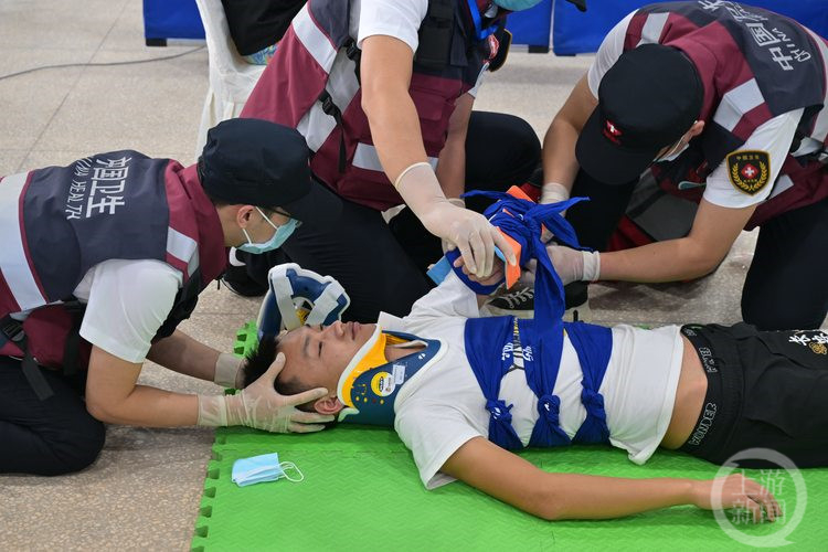 9月15日至16日,重庆全市首届院前急救大比武在陆军军医大学陆军卫勤训练基地举行。上游新闻记者在大比武现场获悉,目前,重庆已经初步建立了覆盖水陆空的全方位急救系统。