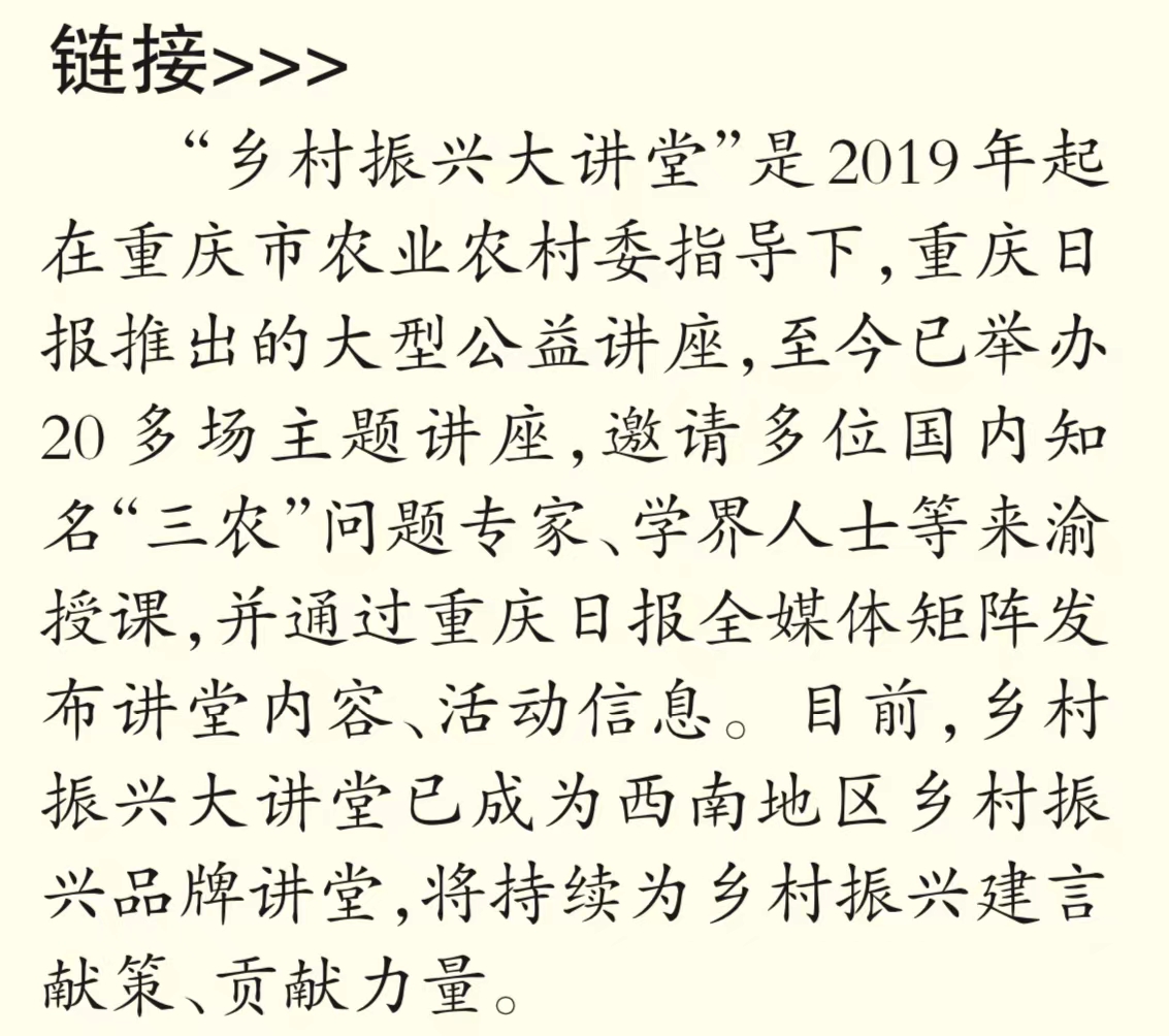 3月17日,2023“乡村振兴大讲堂”第一讲在九龙坡区英雄湾乡村振兴学院开讲。国内著名的农业品牌专家、农业农村部干部管理学院和商务部中国国际电子商务中心特约讲师胡海卿,以《品牌赋能与文化挖掘 提高农产品附加值》为题,为线上线下听众带来了一场角度新颖的分享。