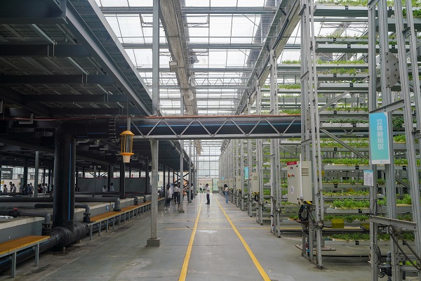 在重庆现代农业高科技园区内的鱼菜共生AI工厂,可实现蔬菜单位面积产量高,年产量20吨/亩,养鱼密度100公斤/立方米,饵料系数降低20%,生长周期缩短1/2。此外,通过种养耦合全循环,蔬菜栽培氮肥全替代,每年还可节水节肥50%以上,整体节省劳动力80%以上。鱼菜共生AI 工厂以轻简化、模块化、标准化、高效化,搭建起“种养循环、绿色高效、资源节约、智能智慧”的种养模式,让经济效益和生态效益一体实现。