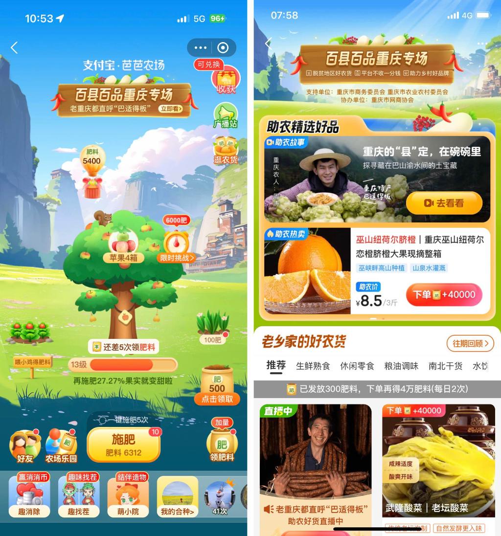 “百县百品助农行动重庆专场”支付宝端内活动界面。受访者供图