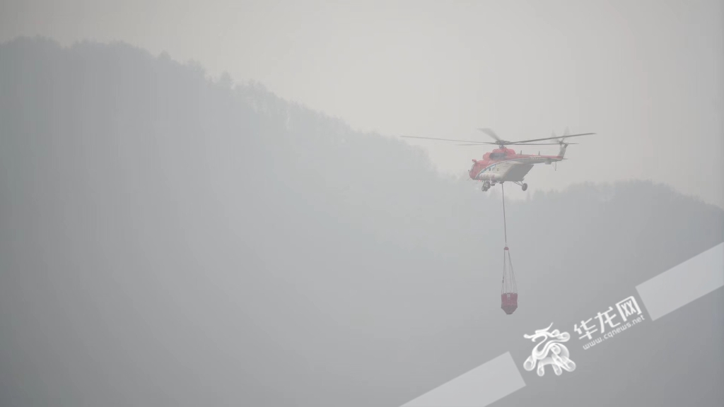 重庆市航空应急救援总队采用“飞机+专业队”立体作战模式,派出阿古斯塔139直升机及时将前方需要的水带等物资通过直升机滑降的方式投送至火场一线。最终,在两地应急救援队通力合作下,成功扑灭明火。