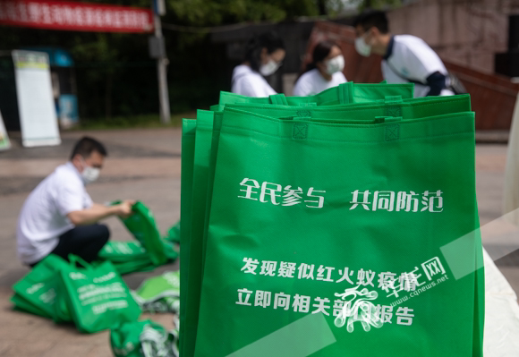 活动方为市民准备的宣传袋上也印有红火蚁防范的提醒。华龙网-新重庆客户端记者 张质 摄