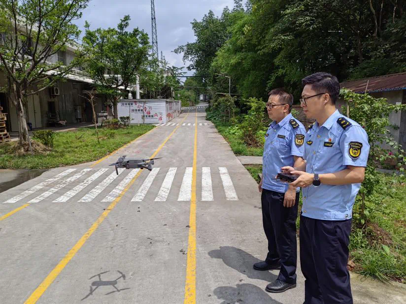 川渝生态环境联合执法人员使用无人机开展现场执法,科技助力守护川渝蓝。重庆市生态环境局供图