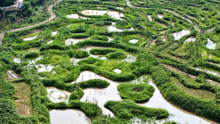 开州区的麻场湾与王家湾小微湿地,则用“生态修复+”模式书写“变废为宝”的故事。麻场湾依托汉丰湖国家湿地公园,通过栽植落羽杉、中山杉等耐淹乔木3.5万余平方米,结合林塘复合系统、泡泡湿地等技术,将昔日脏乱的湖湾打造成“观鸟赏花亲水”的网红地;王家湾则以基塘为核心,种植荷花、水蓼等水生植物2万余株,塘基栽植落羽杉等乔木500余株,不仅修复了6.77公顷坑塘水面,更吸引小白鹭、苍鹭等水鸟栖息,成为生态研学的“天然课堂”。