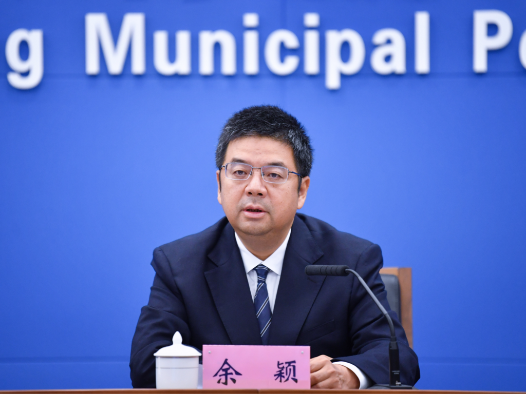 图为市规划自然资源局副局长余颖回答记者提问。