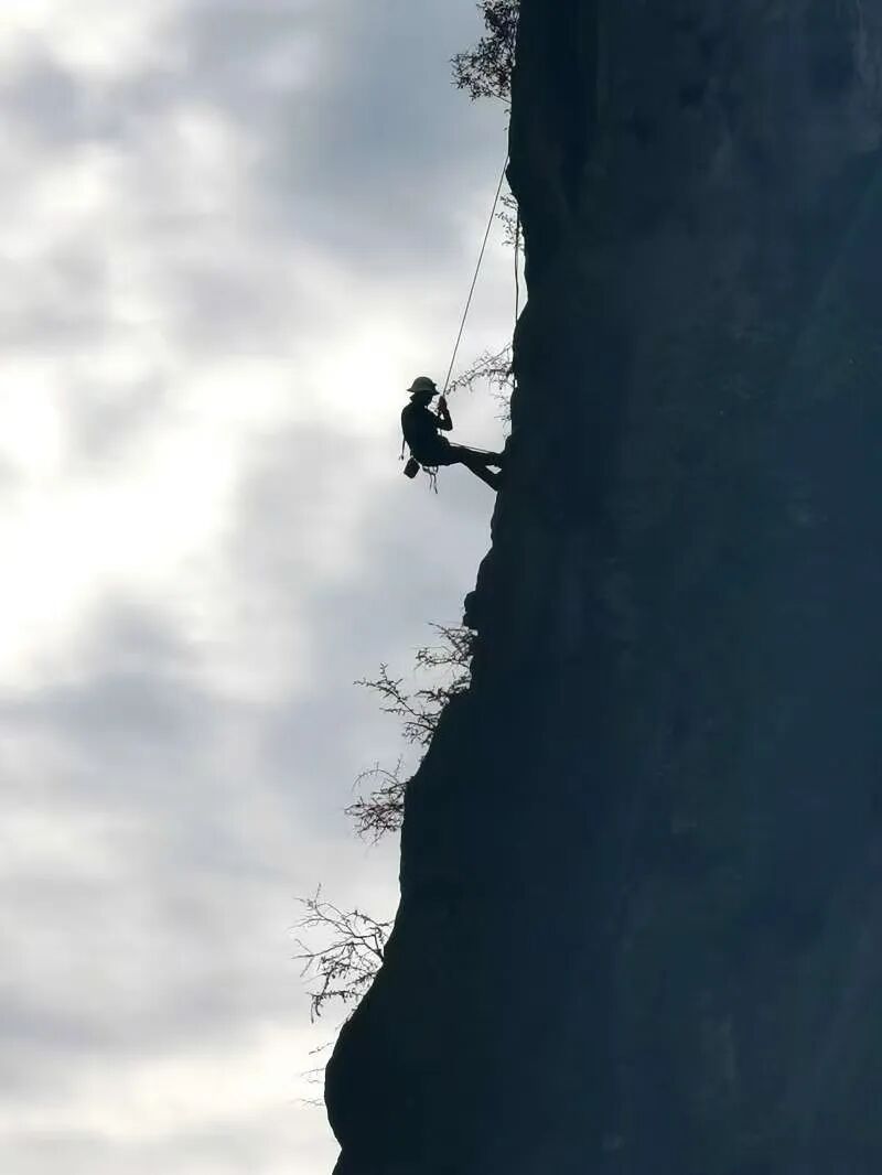 地质工程师化身“蜘蛛人”调查三峡危岩地灾隐患。