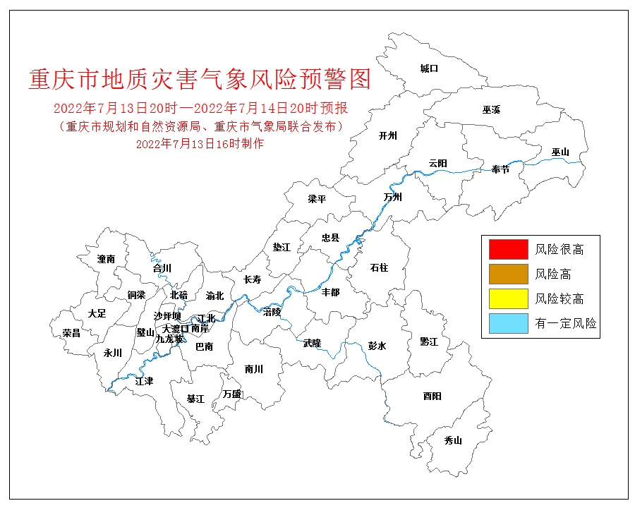 2022年7月13日重庆市地质灾害气象风险预警图-24小时预报