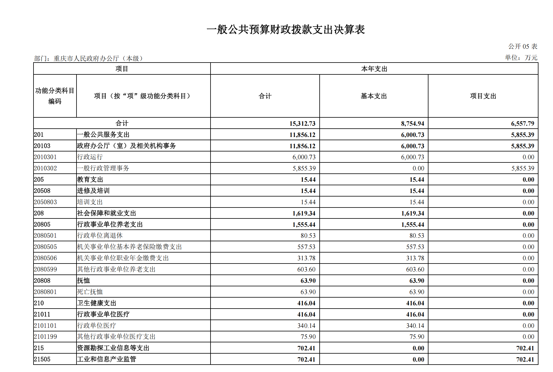 | 标题 : | 重庆市人民政府办公厅(本级)2024年度决算公开说明 | ||||||