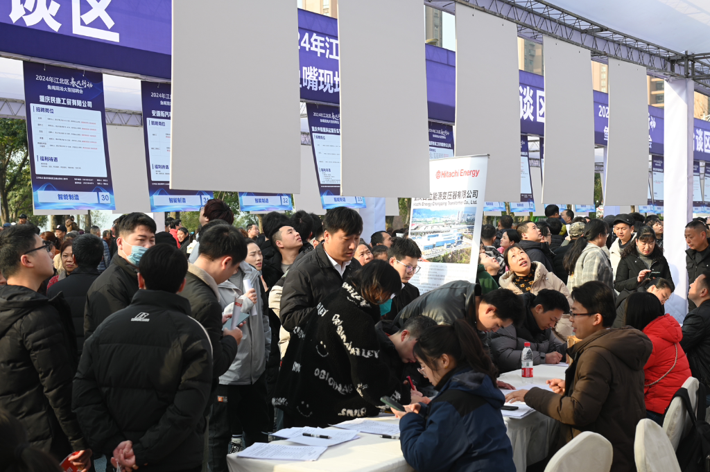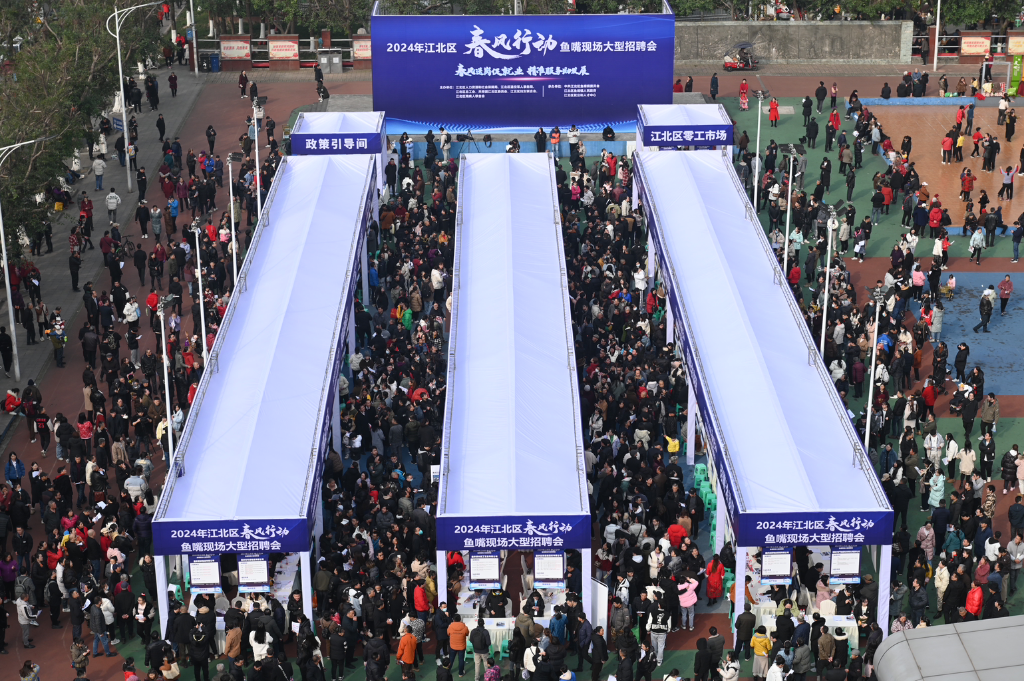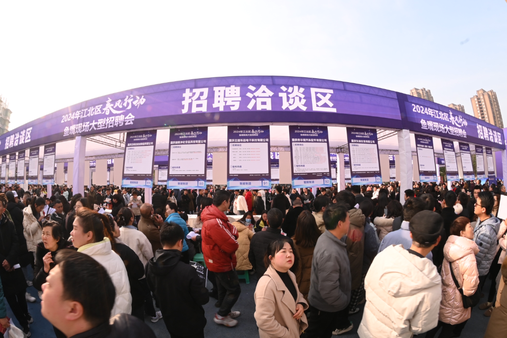 “2024年江北区春风行动鱼嘴现场大型招聘会”在鱼嘴市民广场火热启动。主办方供图
