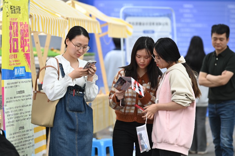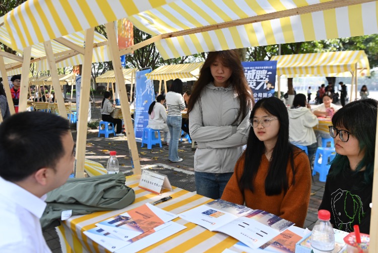 3月31日,毕业生在招聘会现场了解企业招聘信息。特约摄影 孙凯芳
