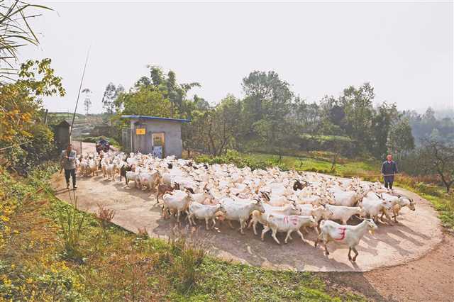 合川区铜溪镇板桥村养殖户在放养白山羊。通讯员 李文静 摄/视觉重庆