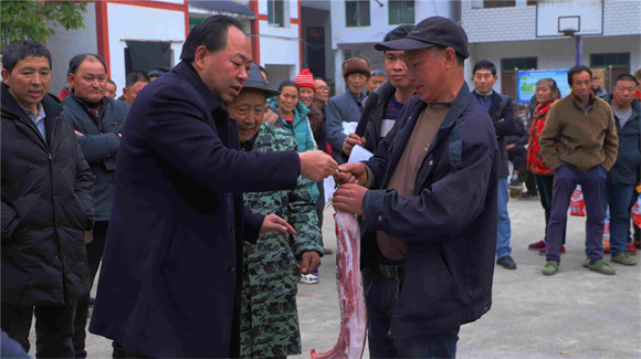 红狮镇文明积分换物活动群众兑换了一块新鲜猪肉。云阳县委宣传部供图 华龙网发