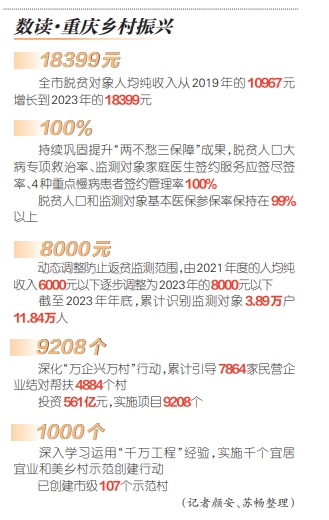 习近平总书记在重庆考察时强调,要深入实施乡村振兴战略,加大对国家乡村振兴重点帮扶县支持力度,建立低收入人口和欠发达地区常态化帮扶机制,坚决防止发生规模性返贫。要学好用好“千万工程”经验,因地制宜开展乡村建设,聚焦现阶段农民群众需求强烈、能抓得住、抓几年就能见到成效的重点实事,抓一件成一件,让农民群众可感可及、得到实惠。