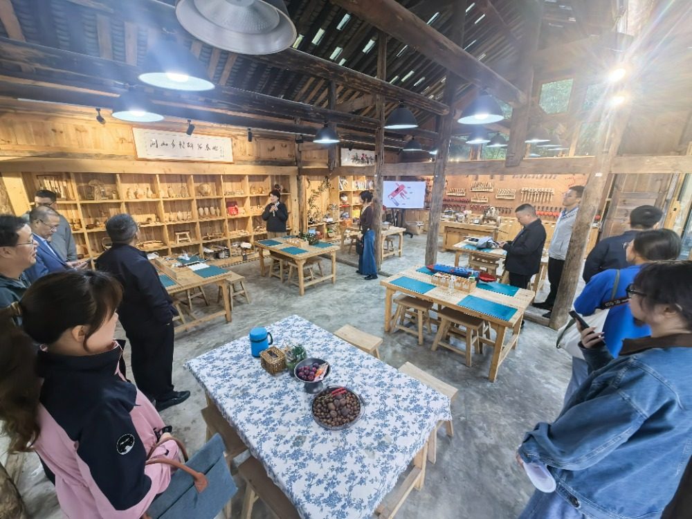 随后,调研团转往北屏镇松柏村。在松柏问山大漆艺术村落,一栋由闲置农房改造的木工坊静立在村落一隅,“我们从儿童木工坊起步,如今已发展成为集木艺、漆艺、自然教育于一体的综合研学基地。”基地负责人介绍,村里通过收储16栋闲置农房,改造艺术家工作室和共享空间13栋,引进文森漆艺、髹七艺术等10余个专业团队入驻。