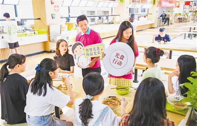 “新学期我们将继续加强节约粮食的宣传。”彭毅表示,食堂餐厅内的各个墙柱上都张贴了“拒绝舌尖上的浪费,光盘一族你我同行”等宣传海报。