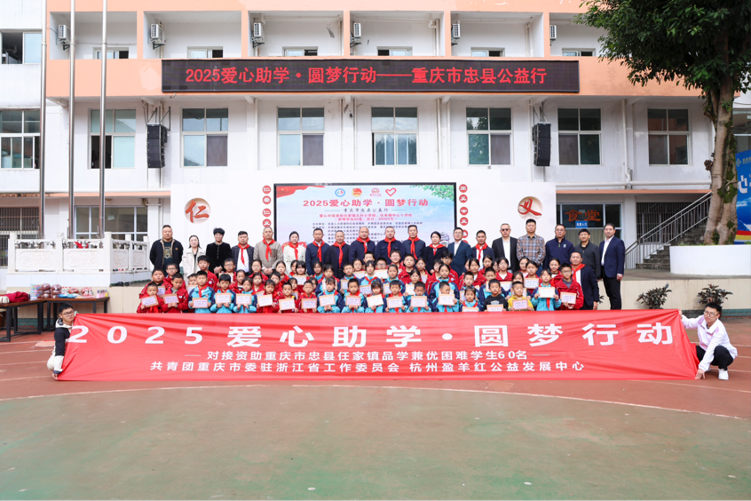 本次活动由忠县人力资源和社会保障局、共青团忠县委员会、忠县任家镇人民政府联合主办,共青团重庆市委驻浙江省工作委员会、重庆驻杭州劳务办事机构、杭州盈羊红公益发展中心承办,政企校社多方力量深度联动,凝聚成强大公益合力,为忠县困难学生架起一座爱心桥梁。