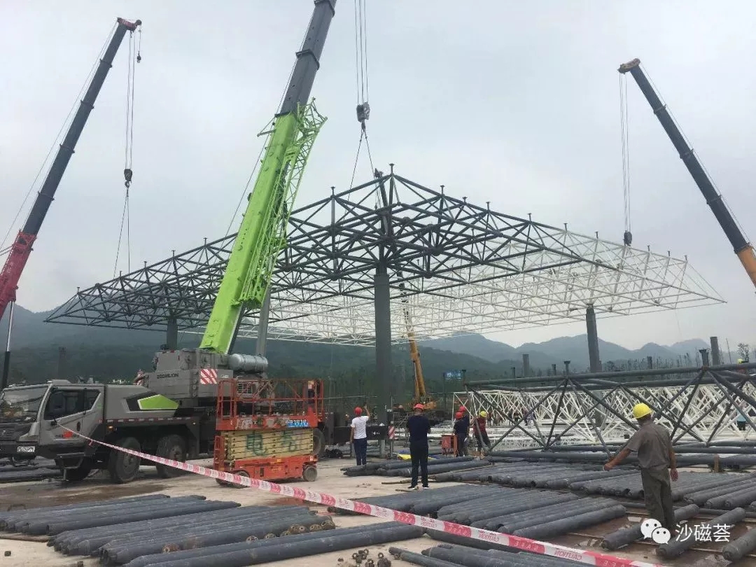 在沙坪坝区青凤工业园,工人们正在进行主体钢珠吊装 图源丨沙磁荟