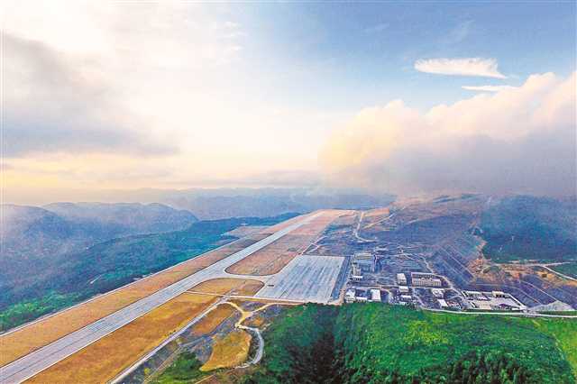 8月9日,晚霞里建设中的仙女山机场。记者 罗斌 摄/视觉重庆