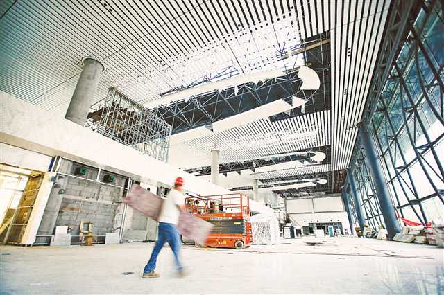 8月9日,候机大厅装饰工程进入收尾阶段。