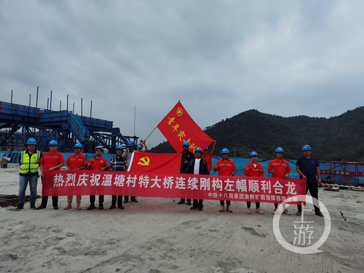 6月20日,上游新闻记者从中铁建重投集团铁发建新公司获悉,渝黔高速公路扩能项目控制性工程温塘村特大桥连续刚构左幅顺利合龙,为年底实现通车奠定坚实基础。