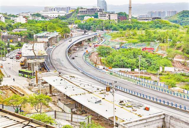 水口立交工程是市级重大建设项目,起于海尔路寸滩长江大桥段,止于港城立交。项目包括对立交范围内海尔路主线长约1.79公里进行八车道拓宽改造,新建四座车行桥梁、一座人行天桥,将现有海尔路与渝邻高速连接道处平交改建为三层分离式立交,预计下月底通车。届时,海尔路和渝邻高速将实现无缝衔接,极大缓解该路段交通压力。