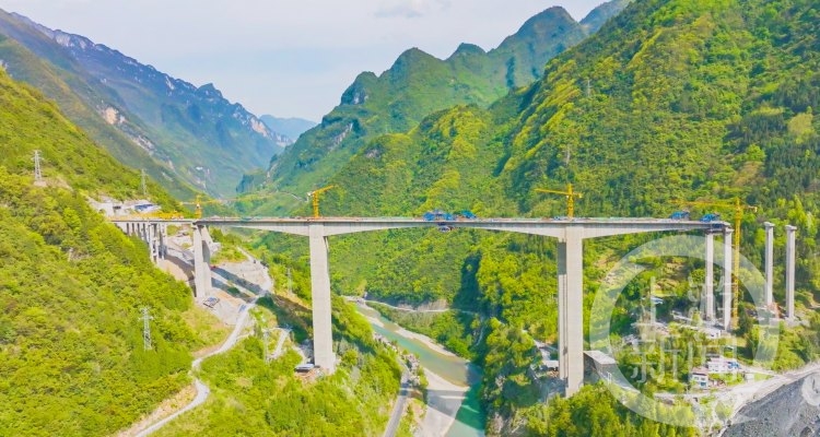 经过46个月的奋战,5月9日上午,城开高速双河口特大桥顺利实现主桥双幅合龙,打通了城开高速今年5月贯通至城口县境内的关键一环。上游新闻记者了解到,目前大桥引桥的T梁架设进入尾声,大桥施工已进入最后冲刺阶段。