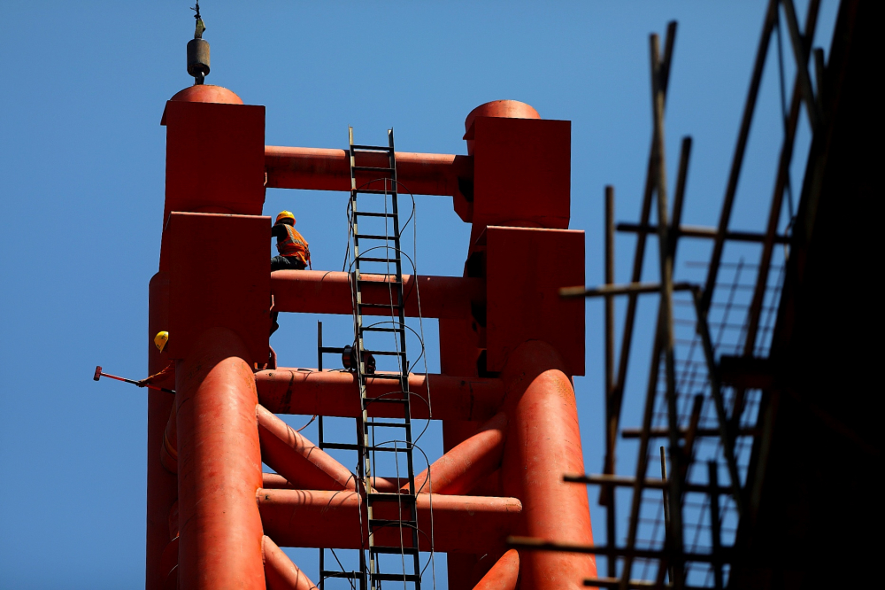 中国交建的技术工人正在紧张施工,为下月实现“空中转体”做最后的准备工作。
