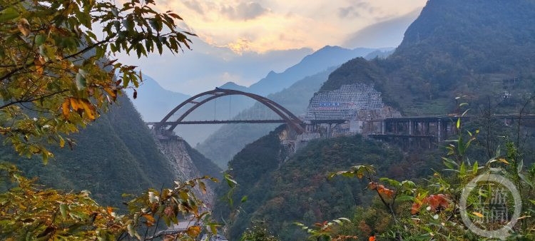 11月12日23时58分,城开高速蓼子特大桥桥面钢梁顺利合龙,标志着国内钢拱桥首创负载行走拱上吊机技术成功实施,为蓼子特大桥年底如期完工迈出了坚实的一步。