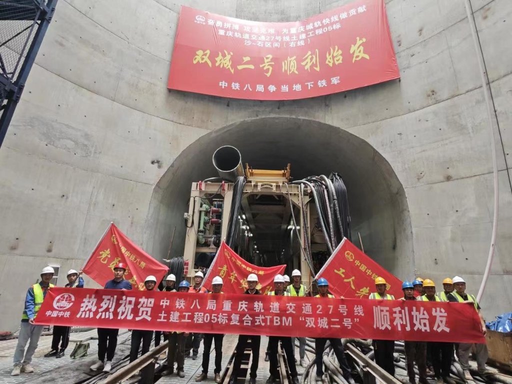 记者从重庆市住房城乡建委获悉,5月8日下午,重庆轨道交通27号线05标沙石区间首台TBM“双城二号”顺利始发,在确保工程安全质量的前提下,较计划始发时间提前近2个月,这标志着线路正式进入TBM施工阶段。