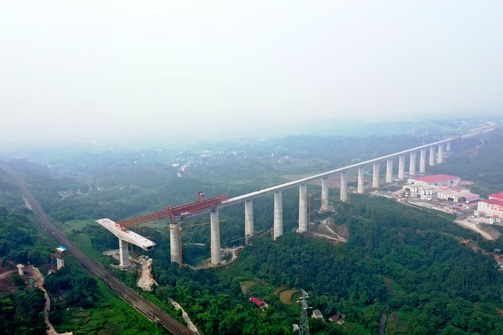 6月21日,渝昆高铁华福特大桥顺利完成最后一孔节段拼装梁架设,为接下来渝昆高铁川渝段顺利铺轨创造了有利条件。