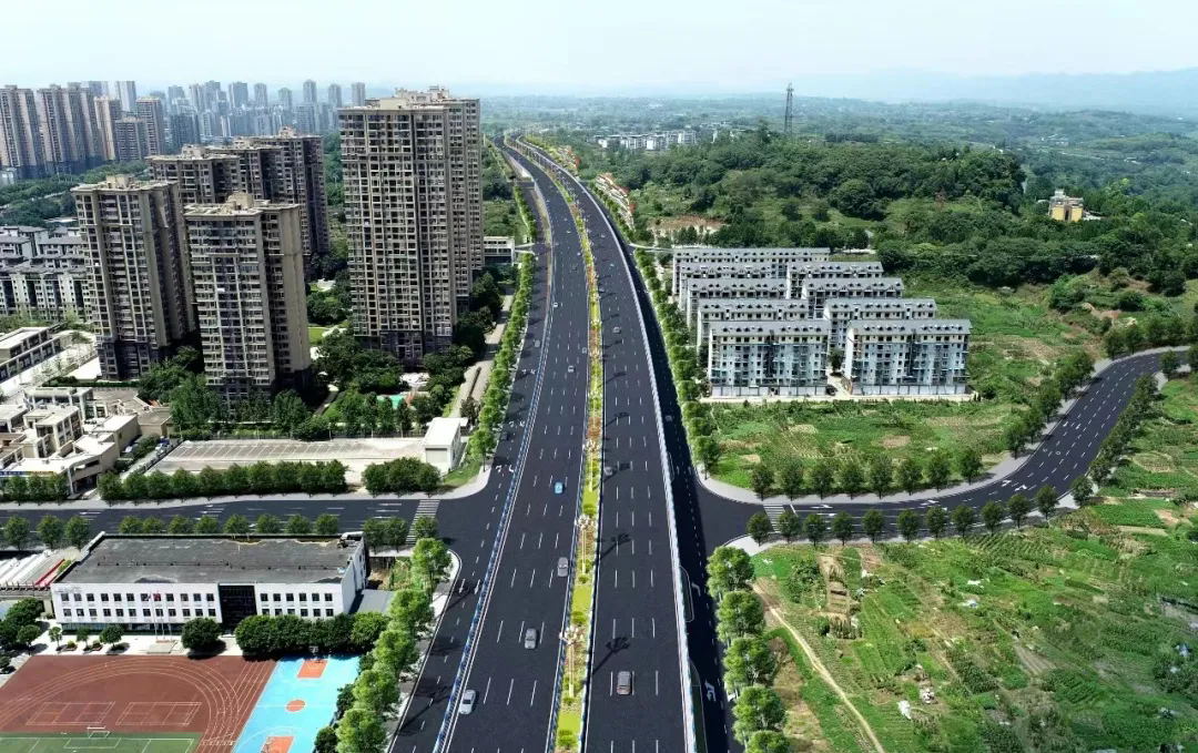 该项目配套建设干线综合管廊,管廊总长度约7.01公里,综合管廊采用2舱室设计,标准断面净空尺寸B×H=7.3米×3.3米,包括综合舱、高压电力舱等两舱室,入廊管线包括电力、给水、通信、中水四类管线,结合道路设计,管廊布设于人行道及部分绿化带下方,覆土深度按不小于3米控制。管廊建成后,将与科学大道(高新区直管园段)干线综合管廊充分衔接,形成西部科学城纵贯南北的干线管廊骨架。