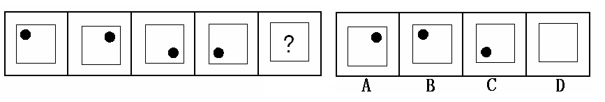 (答案:B。黑点在正方形中顺时针移动。在第5个图形中,应该正好移动到左上角。)