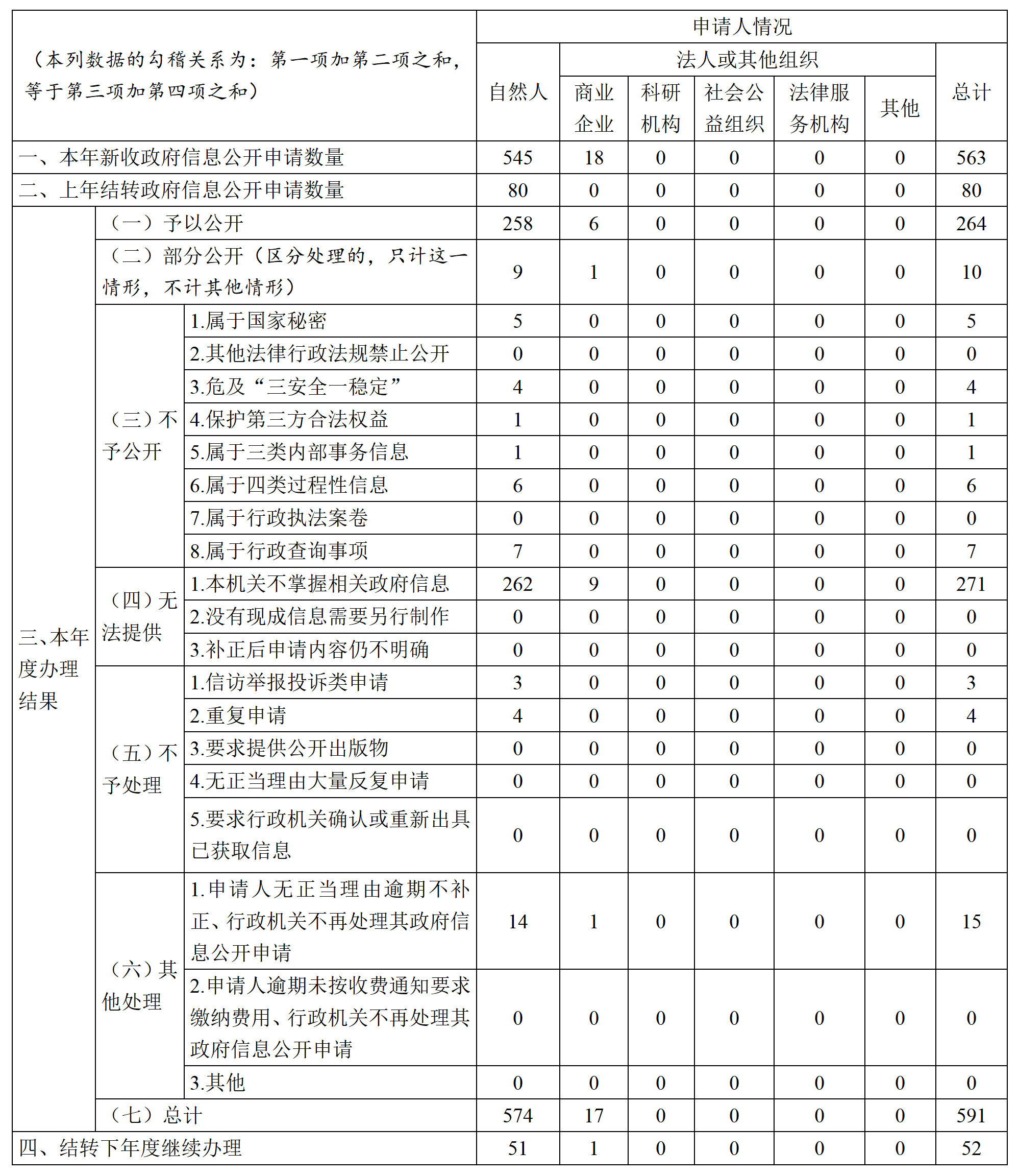 三、收到和处理政府信息公开申请情况